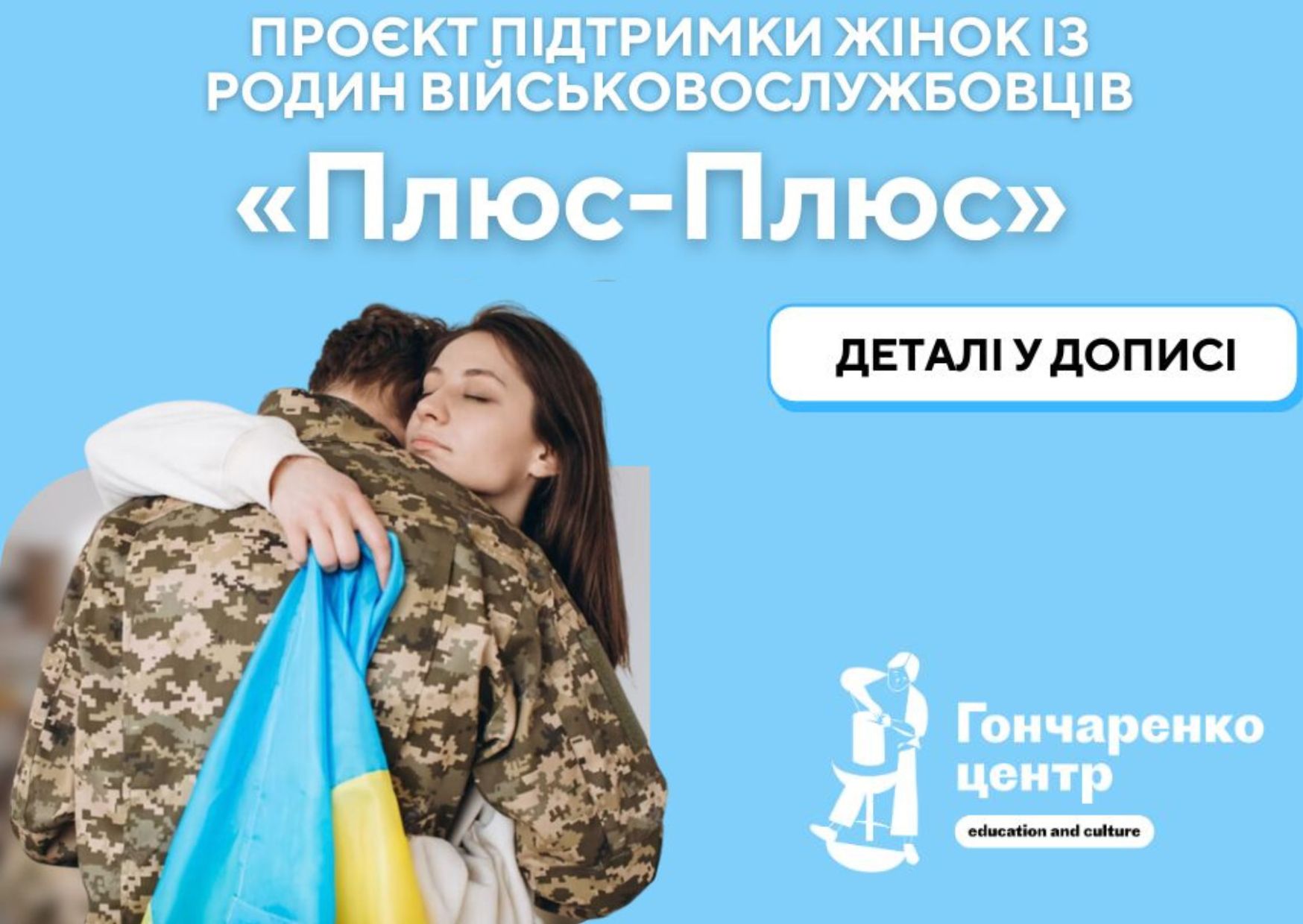 "Плюс-Плюс" - національний проєкт підтримки жінок із родин військовослужбовців від освітньо-культурної мережі Гончаренко центр. Джерело