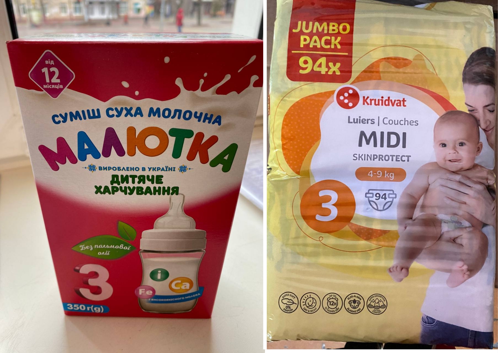 Штаб допомоги вимушеним переселенцям Хмельницької міської ради інформує: Маємо у достатній кількості: суміш суху молочну “Малютка” (від 12 місяців) та підгузки дитячі № 3 (вага дитини 4-9 кг).
